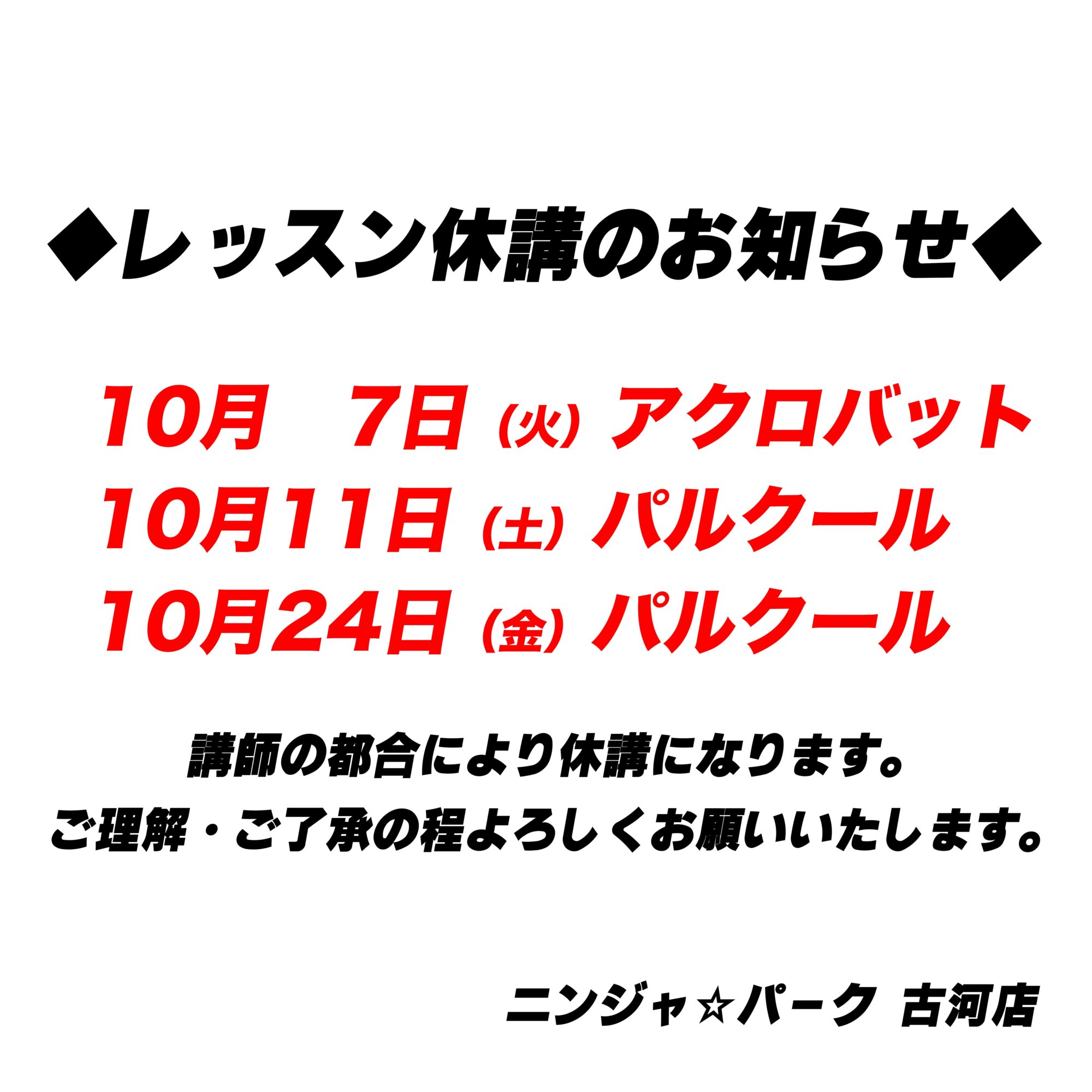 10月、講師の都合により休講となるレッスンのお知らせです。