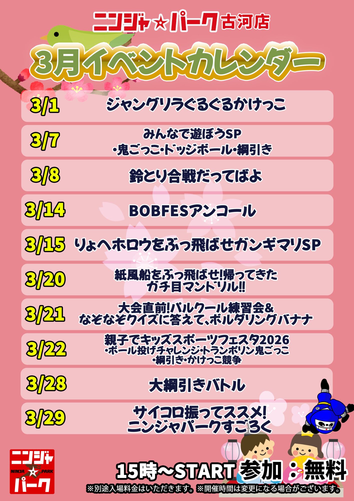 3月の週末イベントカレンダーです!