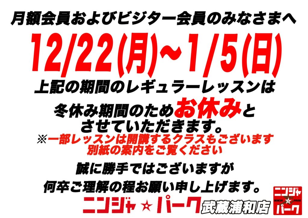 レギュラーレッスンもお休みとさせていただきます。※一部レッスンで開講するレッスンもございます。