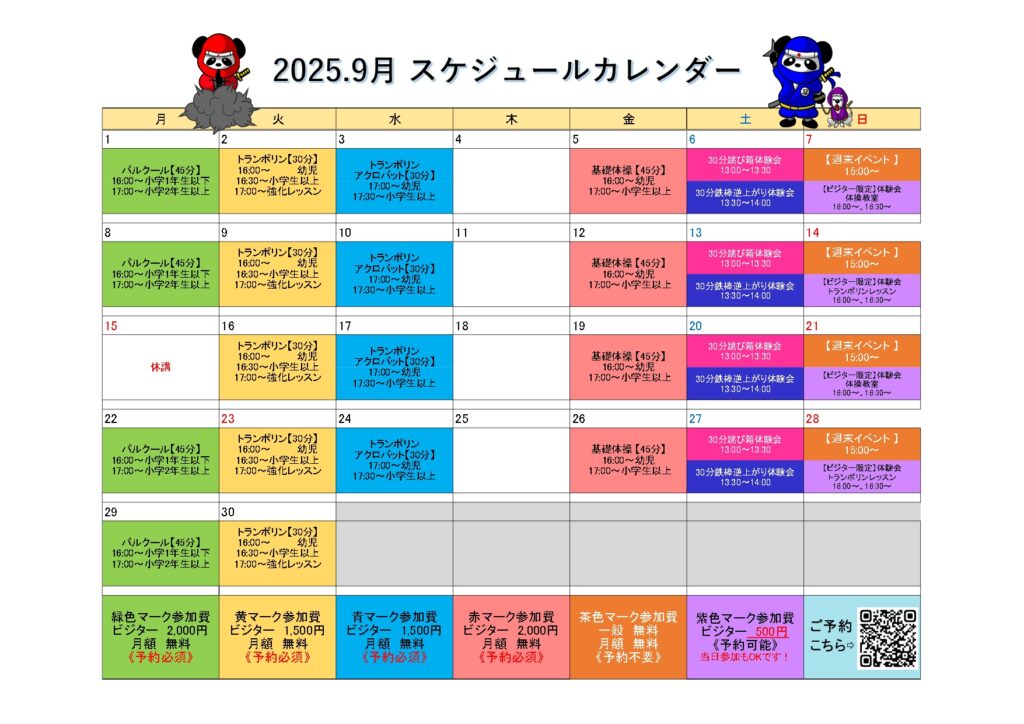 9月レッスンカレンダー