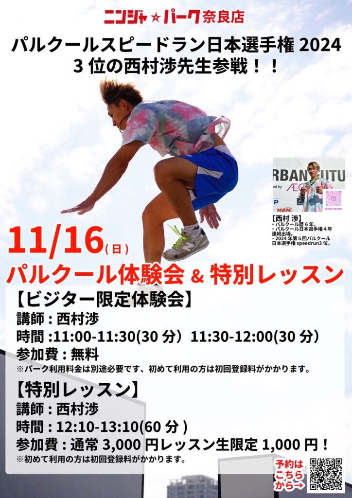 西村渉先生参戦🔥パルクール体験会&特別レッスン開催決定✨️