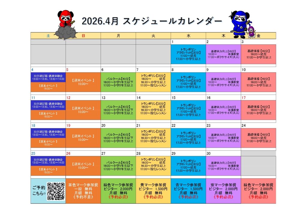 4月レッスンカレンダー